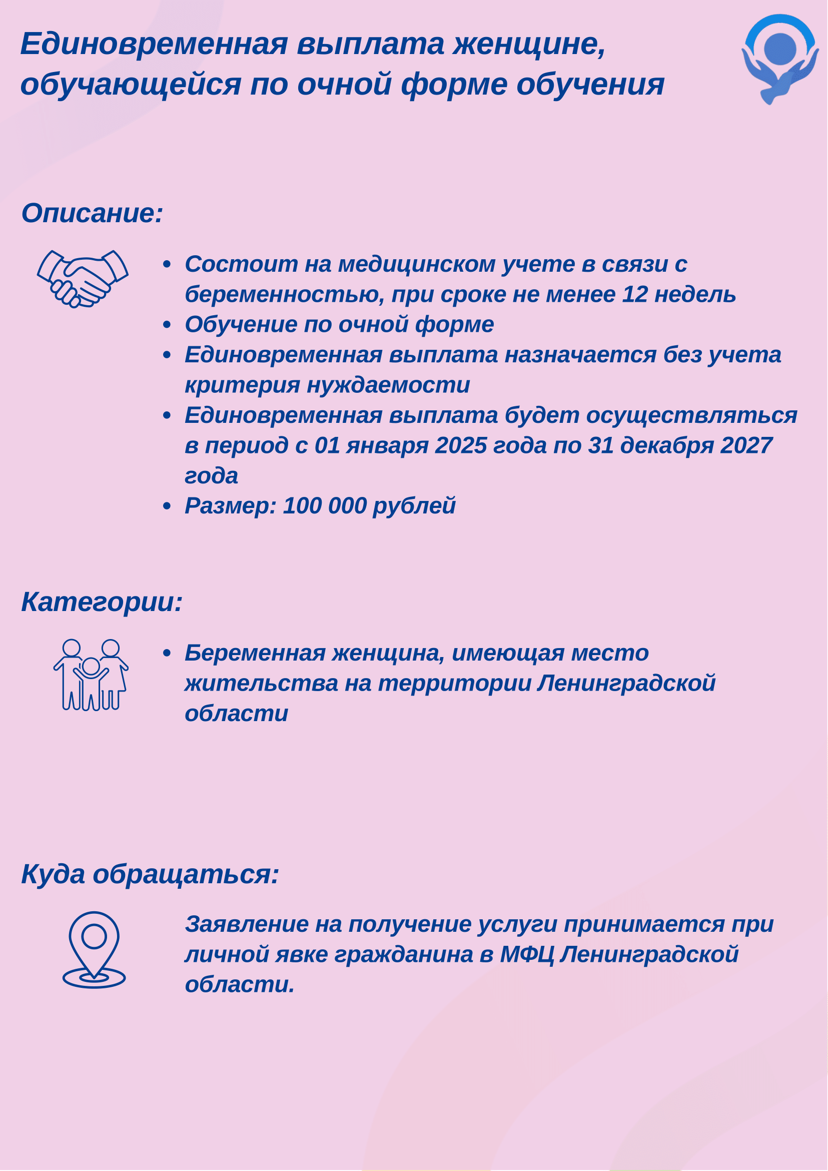 Центр социальной защиты населения – женщине, обучающейся по очной форме обучения
